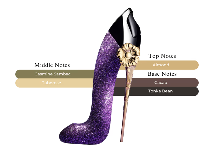 A sparkling and entrancing spin on Good Girl—this limited edition opens with almond, dives into heady tuberose and jasmine sambac, and ends with warm cacao and tonka bean. Vibrant yet darkly alluring—it’s for the daring femme fatale.