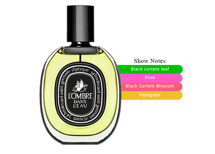 L’Ombre dans L’Eau is the poetry of a garden in bloom—lush blackcurrant leaves and velvety roses. A green, romantic fragrance that feels fresh and intimate.